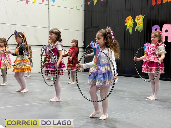 Na última quarta-feira (9), o Ballet Franciele Brigantini realizou sua festa junina em Santa Helena, reunindo todas as turmas em um espetáculo cheio de cores, música e dança. O evento mostrou o talento e a dedicação das alunas, que encantaram.