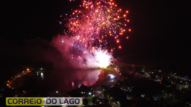 Logo após a chegada de 2026, um espetacular show de fogos de artifício iluminou o céu de Santa Helena, proporcionando um momento de forte emoção, adrenalina e celebração coletiva. O espetáculo visual marcou oficialmente o início do novo ano no Balneário Terra das Águas.