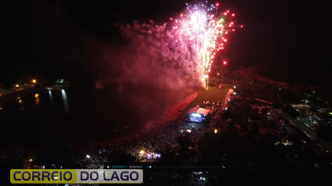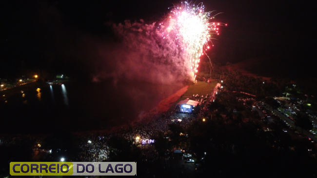 A animação começou com a apresentação do DJ Bass, que aqueceu o público e deu o tom festivo da noite. Em seguida, o show principal ficou por conta da dupla Felipe e Rodrigo, que levantou a multidão com um repertório envolvente e conduziu, junto ao público, a contagem regressiva para a virada do ano, criando um clima de união e expectativa entre os presentes.