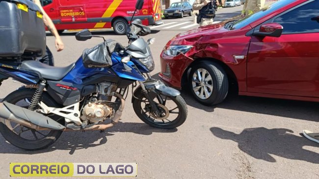 Na tarde desta quinta-feira (18), uma colisão de trânsito aconteceu na área central de Toledo, entre um veículo Chevrolet Onix, e uma motocicleta Honda CG Fan 160 cilindradas. A moto era conduzida por um homem de 27 anos.