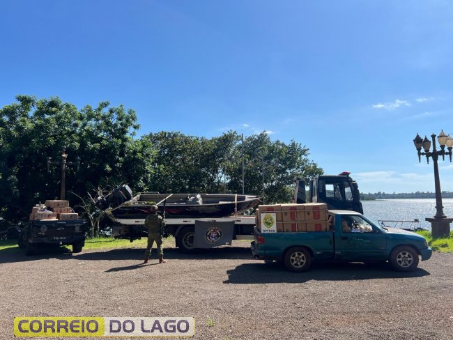 Uma ação integrada da Polícia Militar do Paraná, por meio do Batalhão de Polícia de Fronteira (BPFRON), resultou na apreensão de uma embarcação, um veículo e cerca de 3 mil pacotes de cigarros contrabandeados do Paraguai, na região do Lago de Itaipu, em Santa Helena. A ocorrência foi registrada a noite desta quinta-feira (18), durante patrulhamento embarcado realizado no âmbito da Operação Protetor de Divisas e Fronteiras. Os policiais avistaram uma embarcação suspeita transportando volumes em direção ao território brasileiro, o que motivou a tentativa de abordagem e o acionamento de uma equipe terrestre para cercar a área.