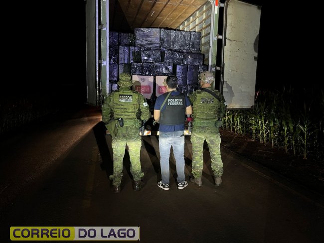 Com o apoio do 14° BPM, as equipes realizaram a abordagem e, durante a vistoria no veículo, localizaram uma carga de 15.000 pacotes de cigarros contrabandeados. O condutor, o caminhão e a carga foram encaminhados à Delegacia da Polícia Federal em Foz do Iguaçu para as providências cabíveis.