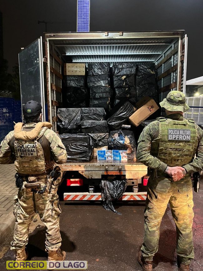 Nesta quinta-feira (24), uma ação conjunta entre a Polícia Militar do Paraná, por meio do Batalhão de Polícia de Fronteira (BPFRON), Polícia Federal (NEPOM) e Polícia Civil (COPE), resultou na apreensão de 9.000 pacotes de cigarros contrabandeados em Foz do Iguaçu.