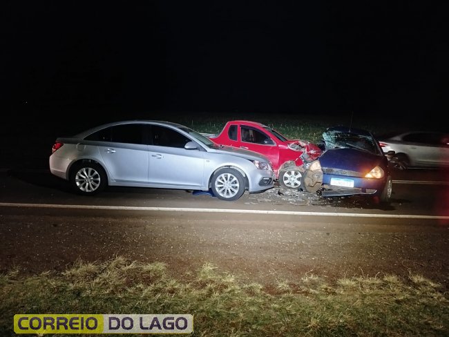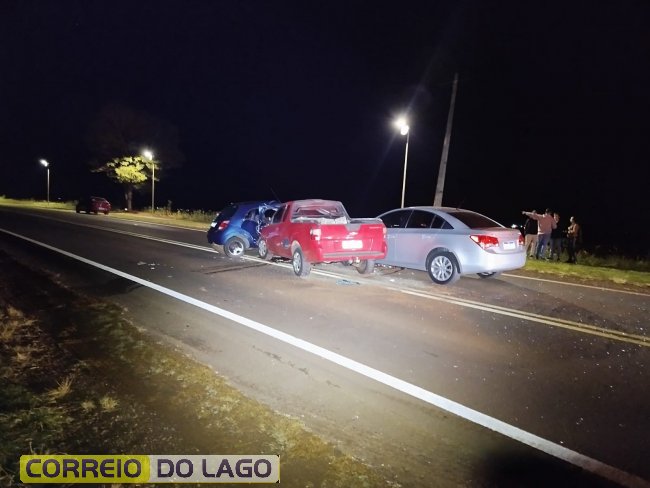 Na madrugada deste sábado (26), a equipe da Polícia Militar Rodoviária (BPRv) de Santa Helena atendeu uma ocorrência de acidente envolvendo três veículos na PR-495, no km 116+100 metros, entre os municípios de Entre Rios do Oeste e Pato Bragado. O sinistro foi registrado por volta das 00h02.