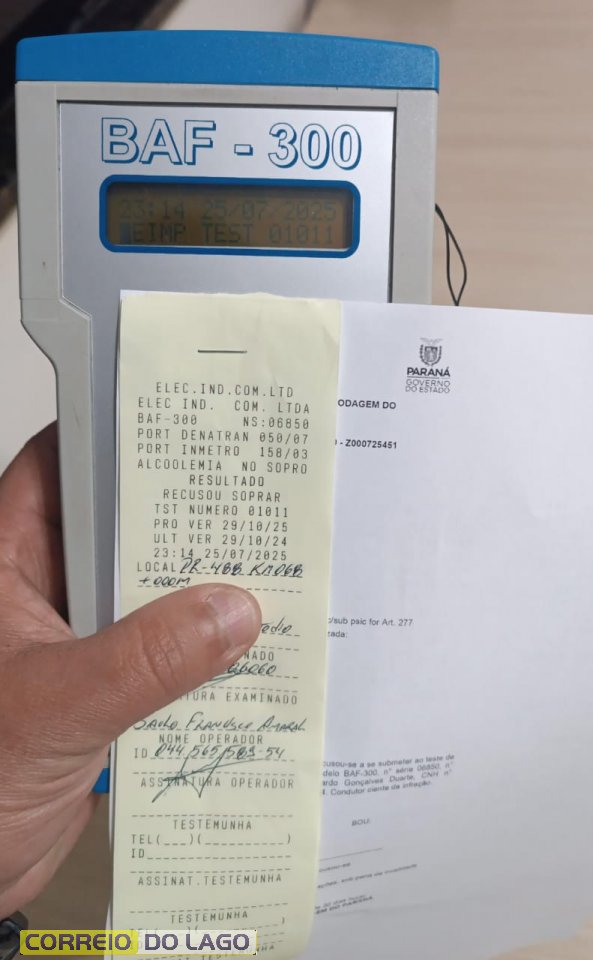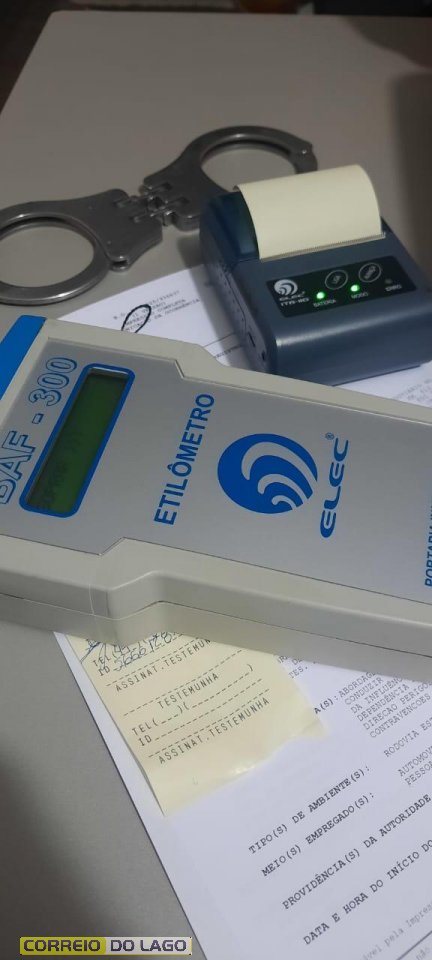Além disso, um condutor foi preso por embriaguez ao volante. Ele tentou fugir da abordagem policial, mas foi alcançado e submetido ao teste de alcoolemia, que apontou resultado de 0,85 mg/l, configurando crime de trânsito.
