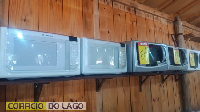 Entre as ofertas em destaque estão os fornos micro-ondas e elétricos da marca Fischer, com preços a partir de R$ 340, e modelos Electrolux e Philco em estado de novos, com valores menores que a metade do preço de mercado.