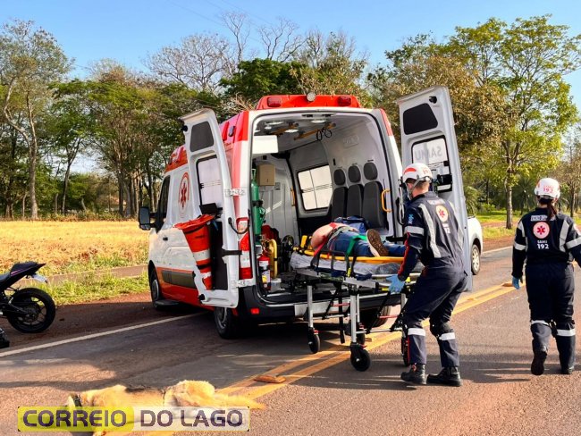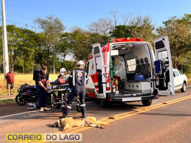 De acordo com as informações, o casal seguia em uma motocicleta Yamaha R3, no sentido Sub-Sede a Santa Helena, quando acabou atingindo um cachorro de grande porte, que invadiu a pista.