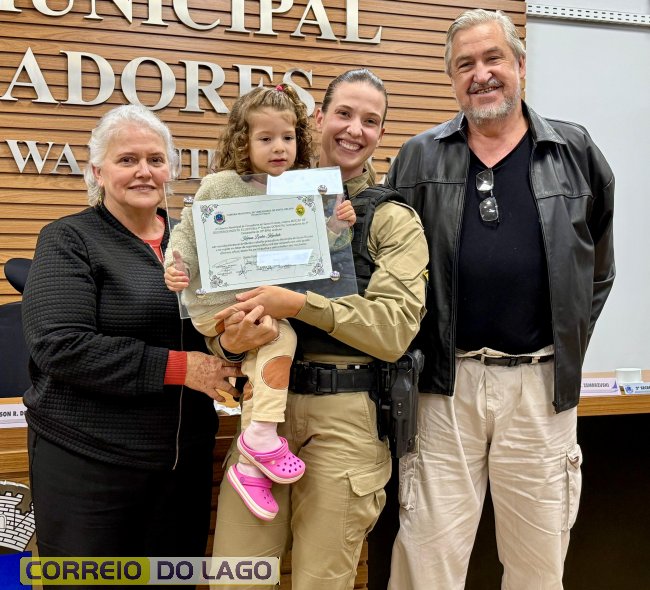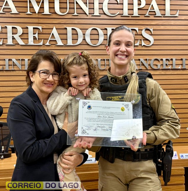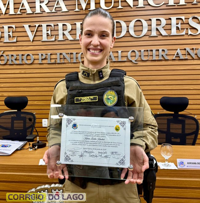 A homenagem reconhece o destaque da oficial em sua atuação no comando da unidade local, bem como nas funções administrativas exercidas junto ao 19º Batalhão de Polícia Militar, com sede em Toledo. A Tenente Karina, que possui laços familiares em Santa Helena, recebeu a honraria com emoção e gratidão.