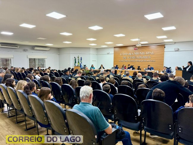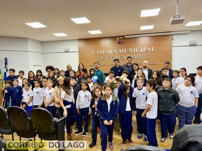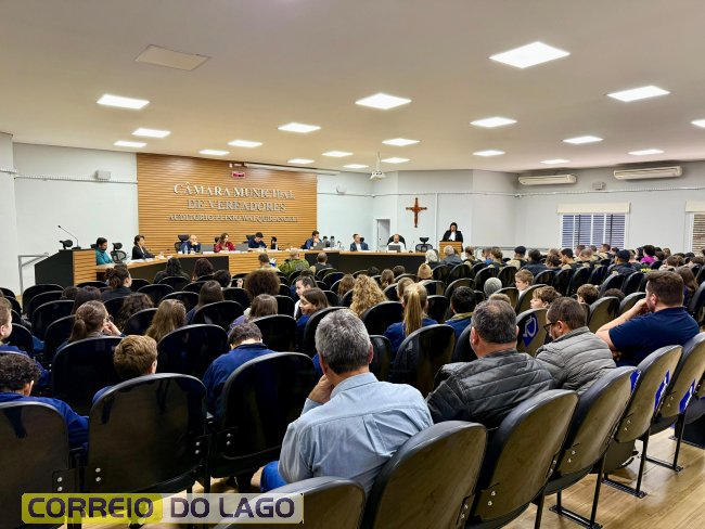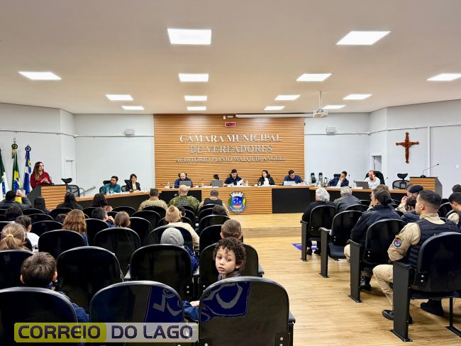 A presença de estudantes da rede municipal reforçou o caráter educativo e comunitário da sessão, promovendo a aproximação entre o Poder Legislativo e a população jovem do município.