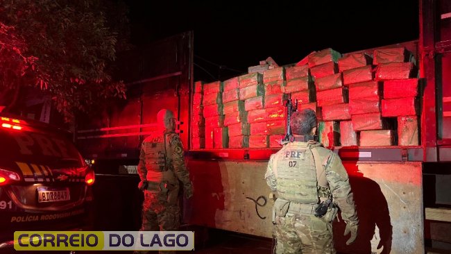 Na noite de quarta-feira (30), a Polícia Rodoviária Federal (PRF) apreendeu 1.540 quilos de maconha escondidos em um caminhão de carga durante uma abordagem em Assis Chateaubriand. A droga havia saído do município de Santa Helena, conforme confessou o motorista.