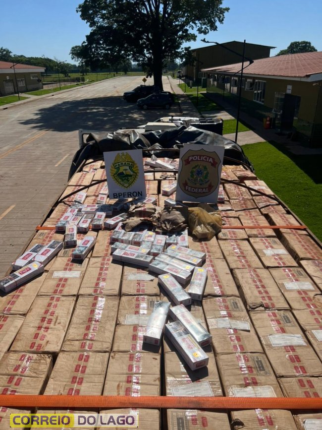 No caminhão VW/24.280, os policiais encontraram 350 caixas de cigarros contrabandeados do Paraguai, totalizando 17 mil pacotes no compartimento de carga. A verificação dos sinais identificadores revelou ainda que o veículo havia sido roubado em Rolândia (PR) em abril de 2019.
