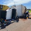 Caminhão tomba na PR-497 em Itaipulândia e motorista é encaminhado ao hospital