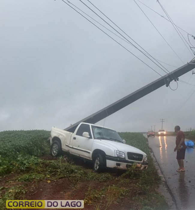 Caminhonete bate em poste e mobiliza equipes do Corpo de Bombeiros e Defesa Civil em Santa Helena (ATUALIZADA)