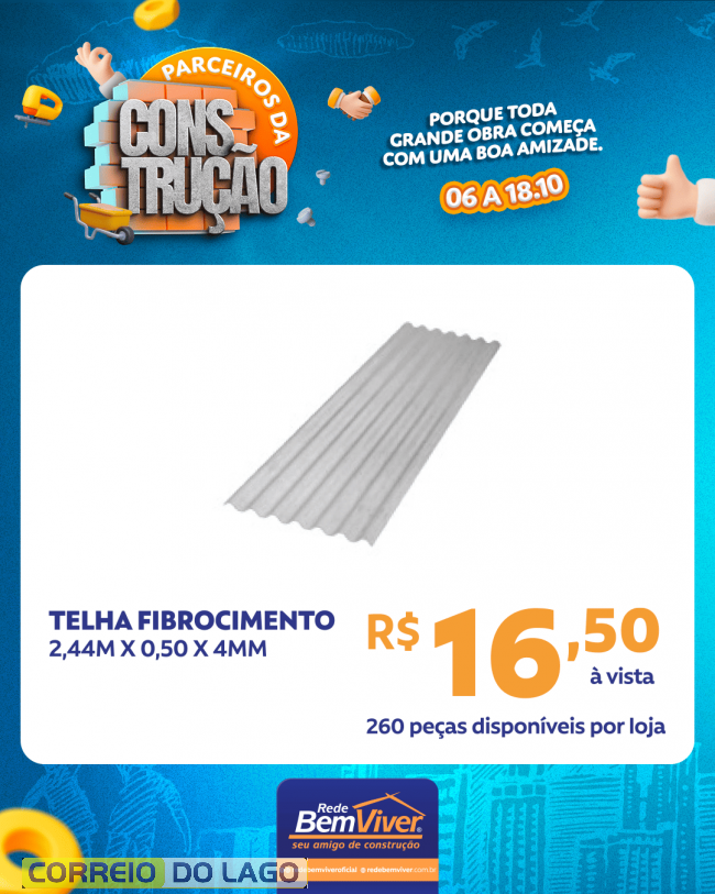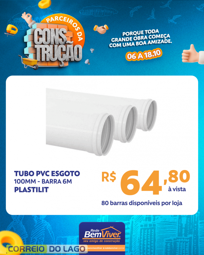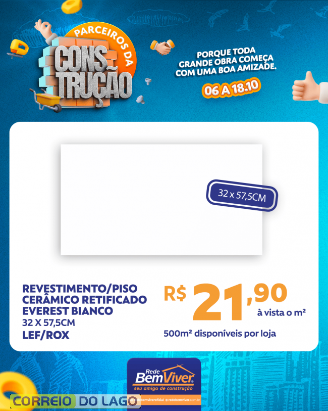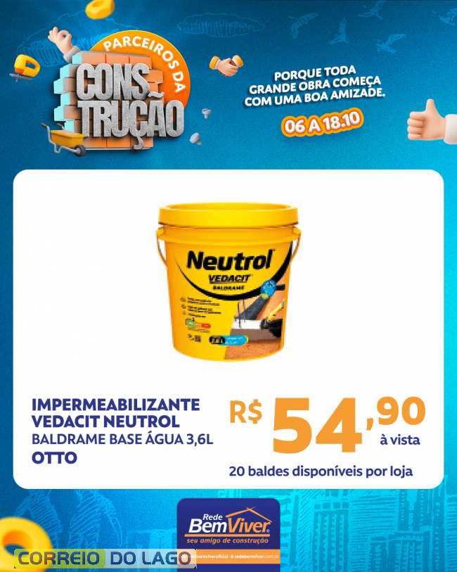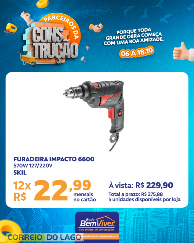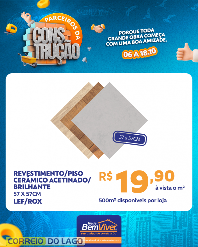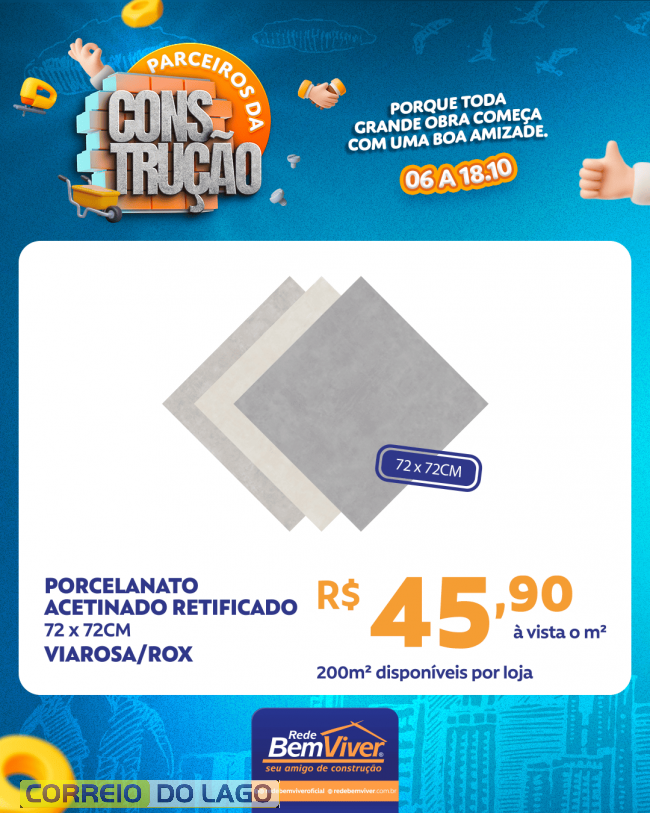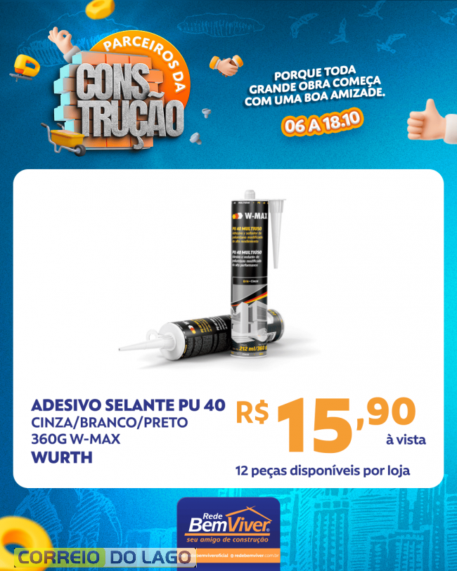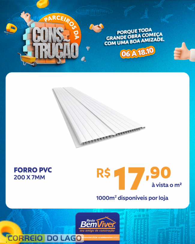 Nesta segunda-feira (6), teve início a campanha Parceiros da Construção no Ponto Forte – Rede Bem Viver, com promoções especiais em materiais, ferramentas e produtos voltados a obras, reformas e manutenção. A ação segue até 18 de outubro e reúne grandes marcas do setor, oferecendo condições facilitadas de pagamento e quantidades limitadas por loja.