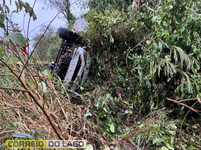 Capotamento impressionante durante chuva forte deixa motorista ferido na PR-488 em Santa Helena