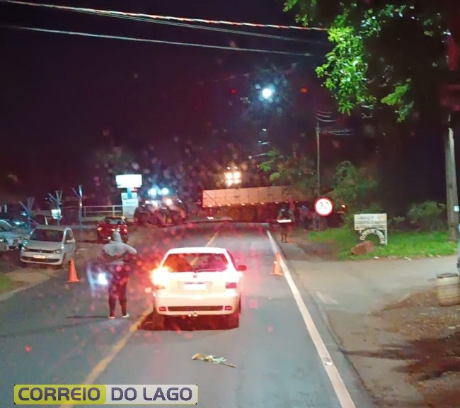 Uma carreta com problemas mecânicos interditou temporariamente a rodovia PR-495, na noite desta terça-feira (10), entre o distrito de São Clemente, em Santa Helena, e o município de Entre Rios do Oeste.