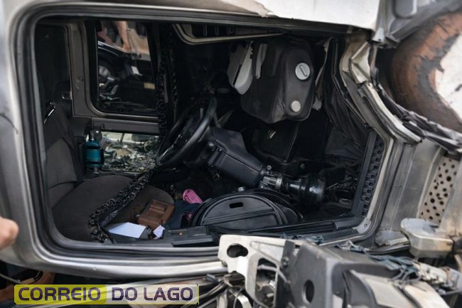 Com a força do impacto, a cabine do caminhão atingido ficou pendurada e praticamente destruída. Apesar da gravidade da colisão, o motorista informou que não sofreu ferimentos, já que utilizava o cinto de segurança.