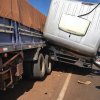 Carreta de Nova Santa Rosa se envolve em acidente na BR 163 em Quatro Pontes