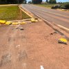 Carreta sobe em meio-fio e causa danos no novo trevo da PR-317 em Santa Helena