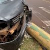 Carro bate em poste e interdita Rua Carlos Barbosa em Toledo