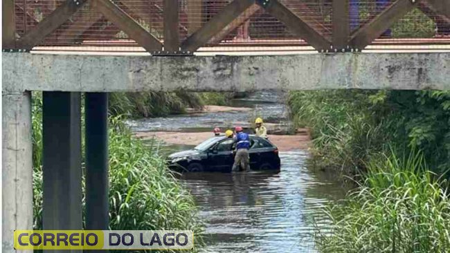 Um Volkswagen Gol caiu dentro do Córrego Bezerra no Ecopark Oeste em Cascavel, no Oeste do Paraná, no início da tarde de terça-feira (20). A situação aconteceu na rua Paraná.