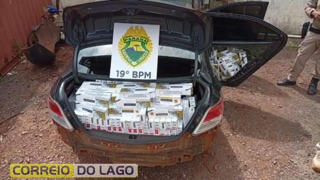 Um carro carregado com cigarros foi apreendido e o motorista preso após uma tentativa de fuga em Guaíra, no início da tarde desta terça-feira (10).