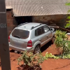 Carro desce barranco e atinge muro de casa no Cancelli em Cascavel