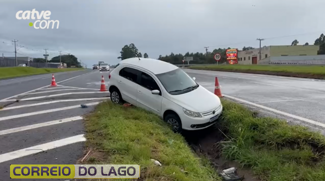 Volkswagen Gol saiu da pista e parou na canaleta da BR-277 em Cascavel, na manhã deste sábado (10). A situação aconteceu no km 599, nas proximidades do Aeroporto de Cascavel, na saída para Foz do Iguaçu.