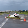Carro sai da pista e para na canaleta da BR-277 em Cascavel