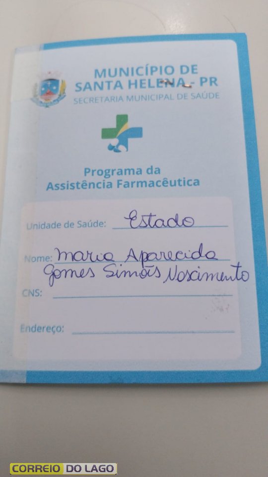 Na manhã desta terça-feira (03), foi encontrada em frente ao Paço Municipal de Santa Helena uma carteira do Programa Assistência Farmacêutica em nome de Maria Aparecida Gomes Simões Nascimento.