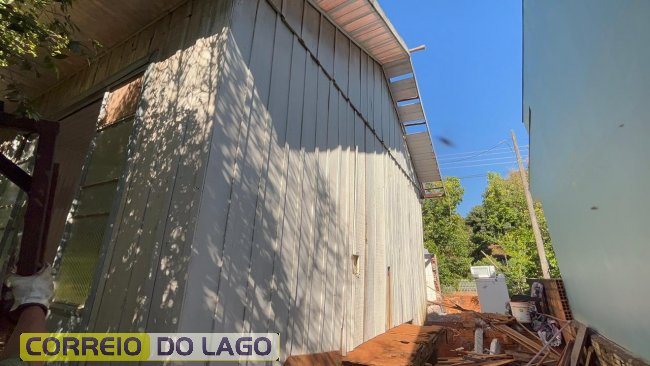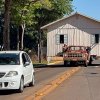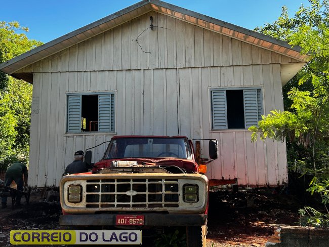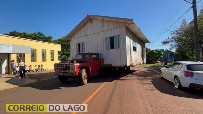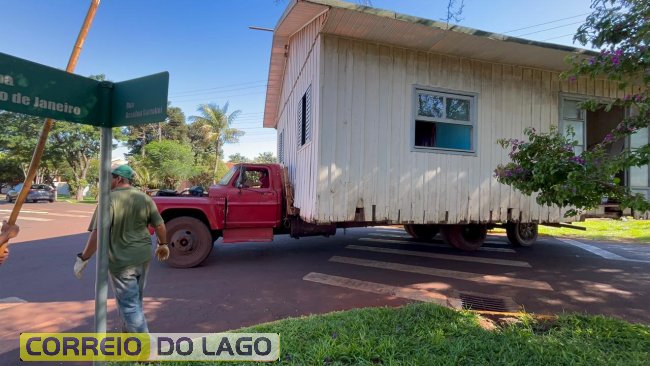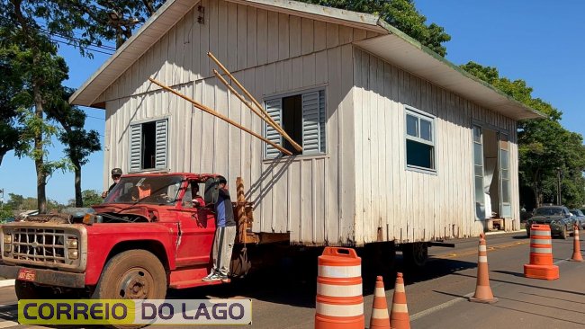 Na manhã desta quarta-feira (22), uma casa foi retirada de seu local original, localizado na Rua Amadeu Bortolini, no cruzamento com a Rua Rio de Janeiro, em Santa Helena, e transportada sobre um caminhão até o distrito de São Roque.