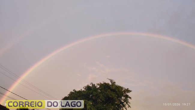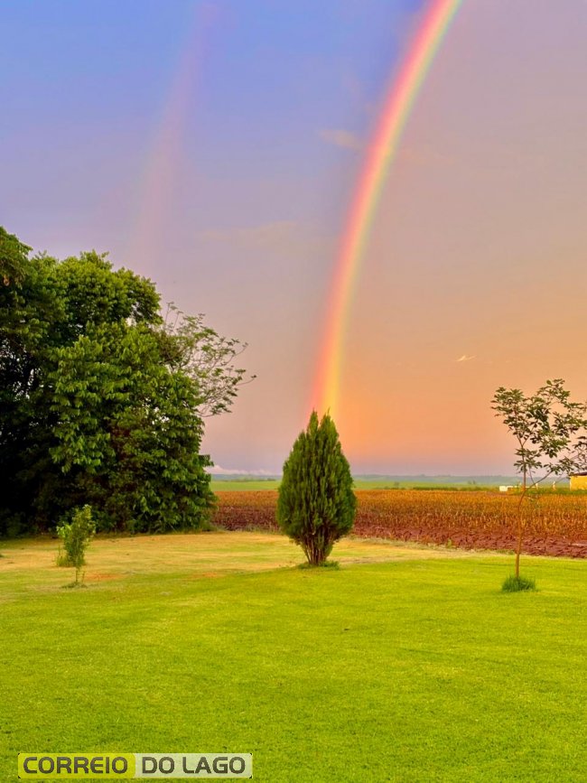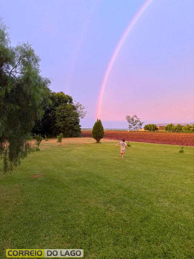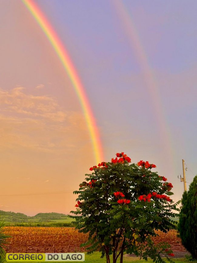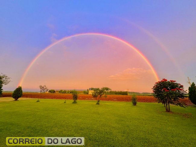 O arco-íris se formou com a abertura do sol no fim da tarde, após o período chuvoso e pôde ser observado por alguns minutos, destacando-se na paisagem do município.