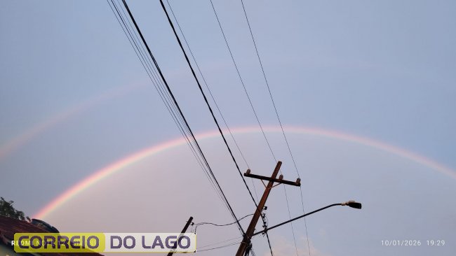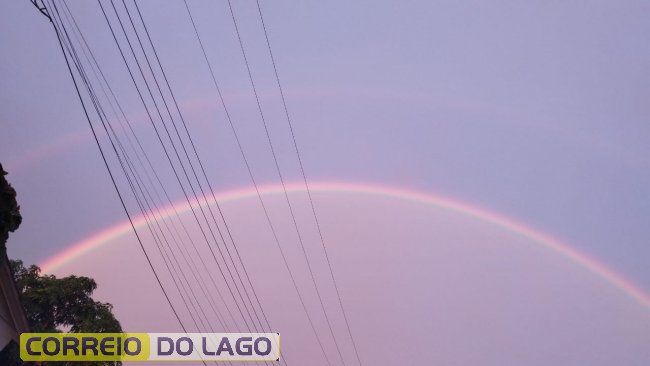 Céu de Santa Helena ganha arco-íris e chama a atenção de moradores