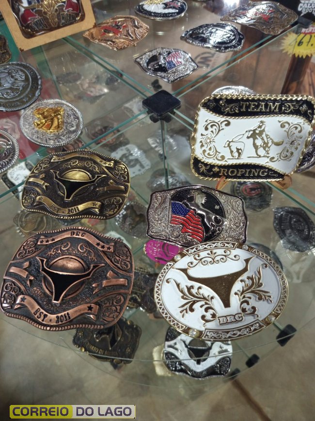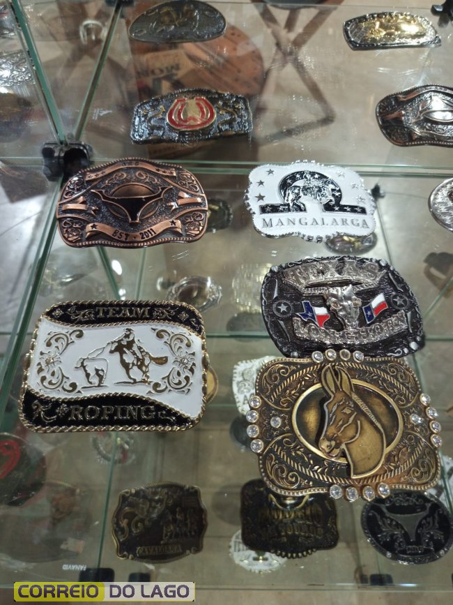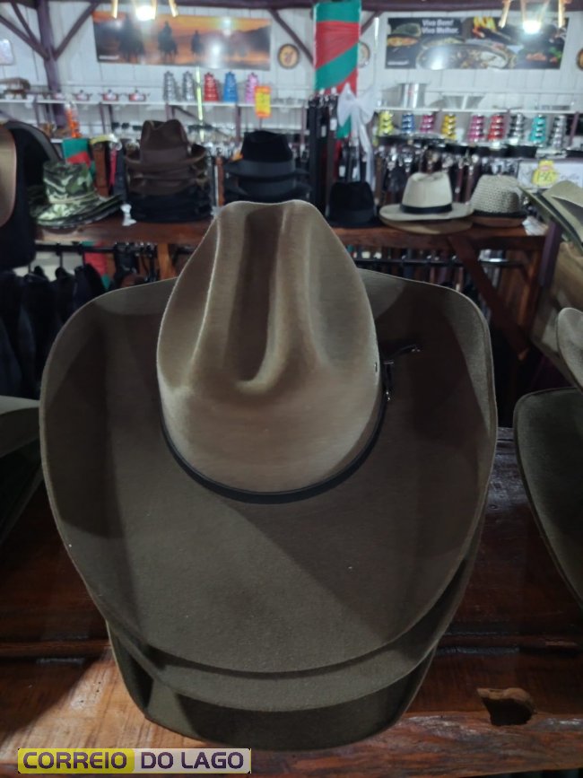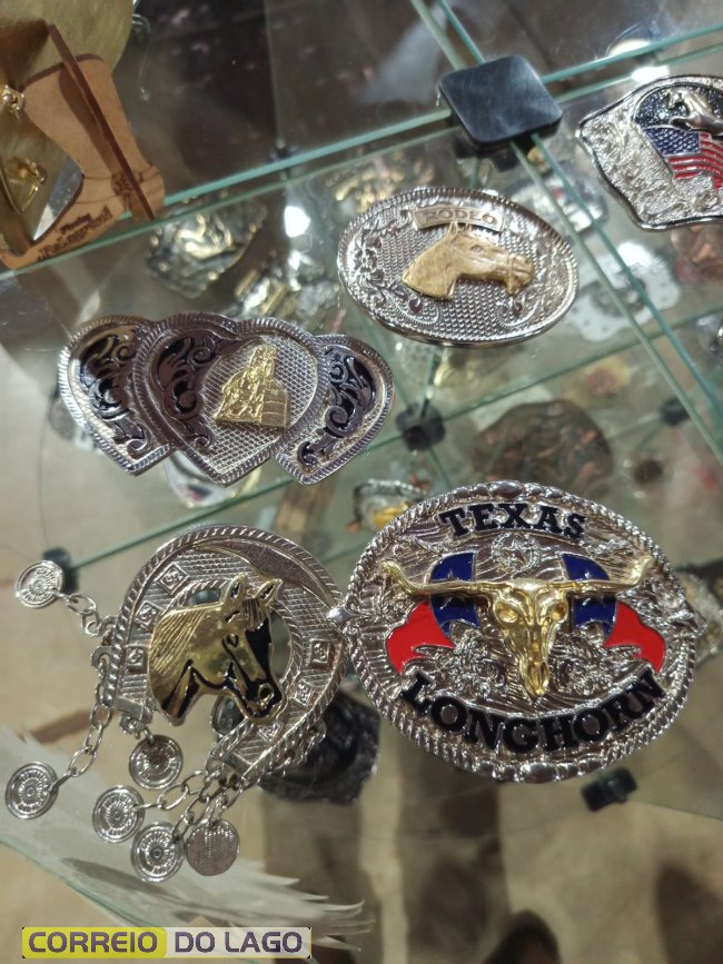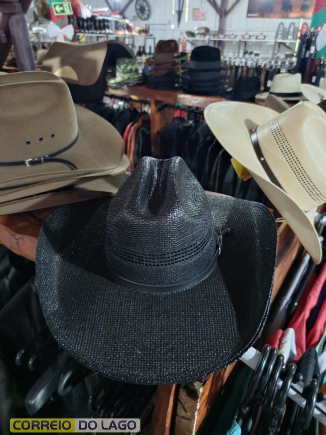 A variedade de fivelas também chama atenção, com modelos detalhados que permitem personalizar o visual. Para completar o look, a loja dispõe de diversos tipos de chapéus, produzidos em diferentes materiais e estilos.