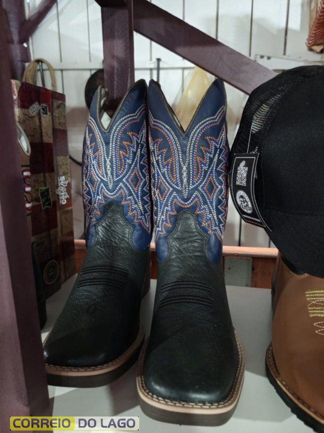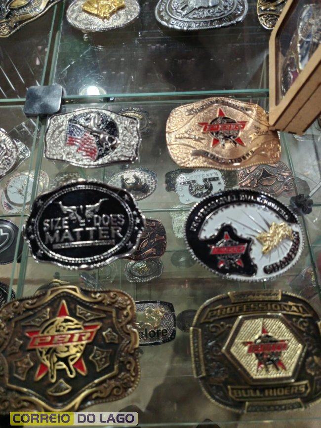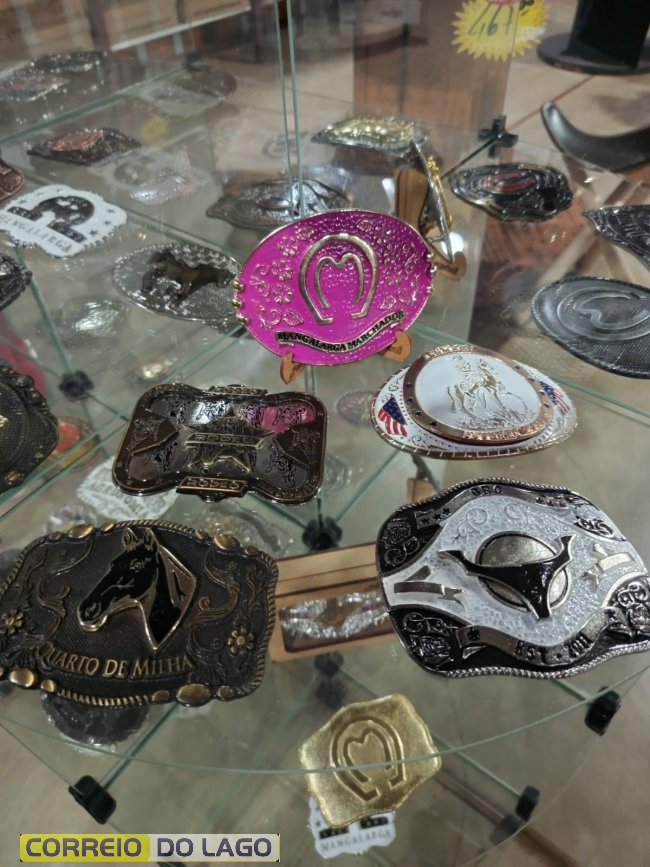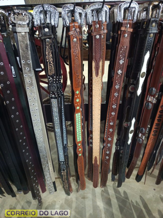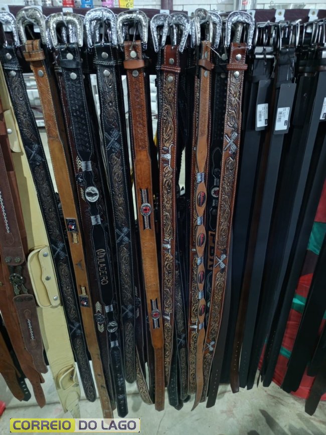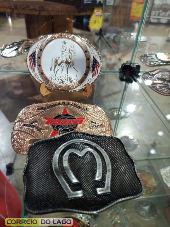 A variedade de fivelas também chama atenção, com modelos detalhados que permitem personalizar o visual. Para completar o look, a loja dispõe de diversos tipos de chapéus, produzidos em diferentes materiais e estilos.