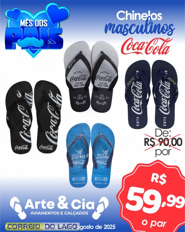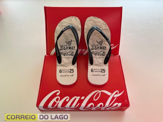 Além disso, a loja também oferece carteiras masculinas e os chinelos da Coca-Cola, que estão em promoção por R$ 59,99 o par.