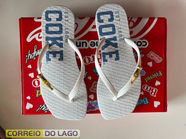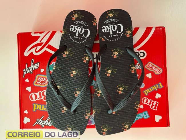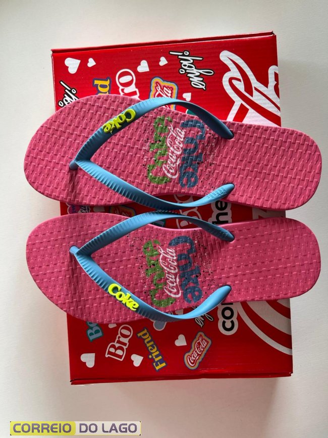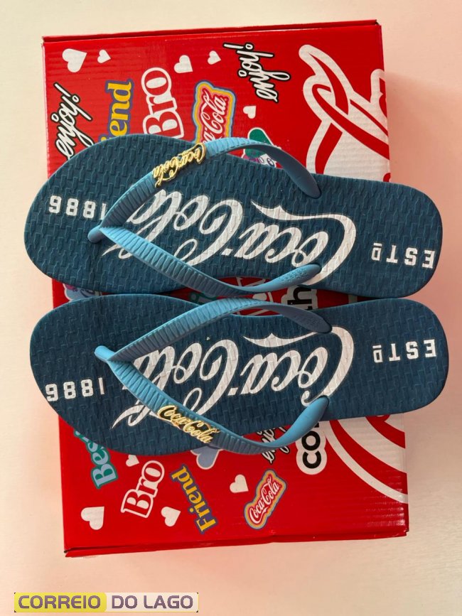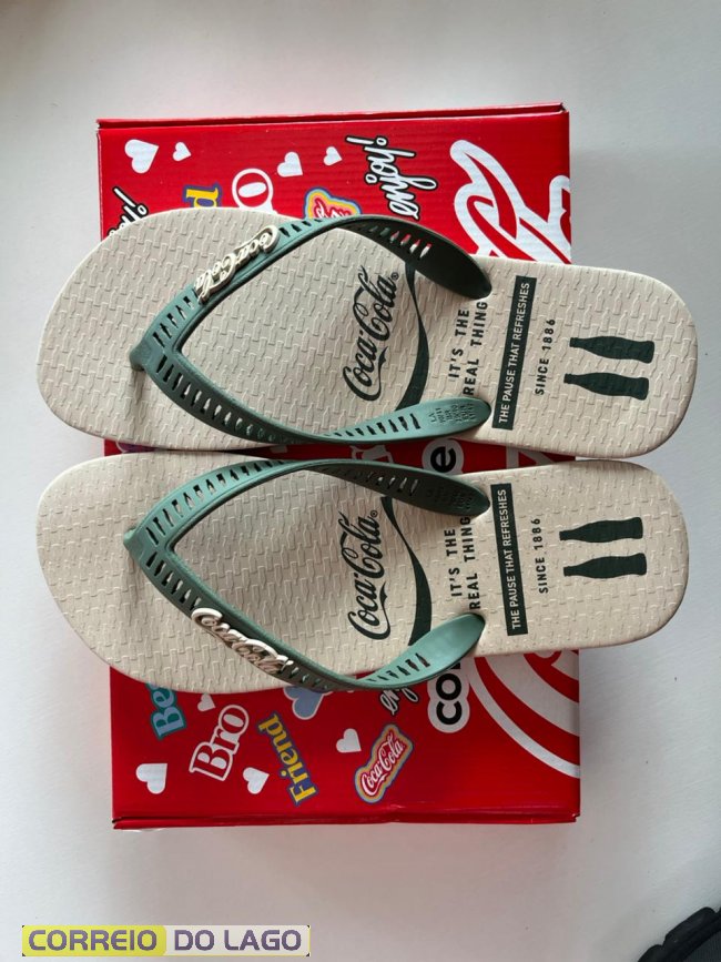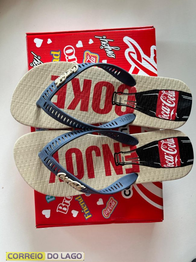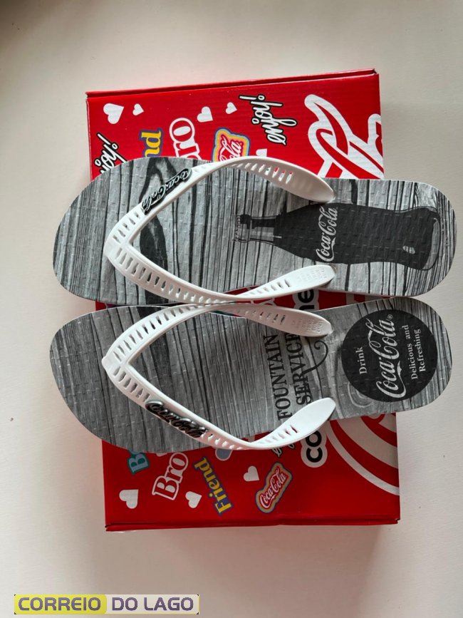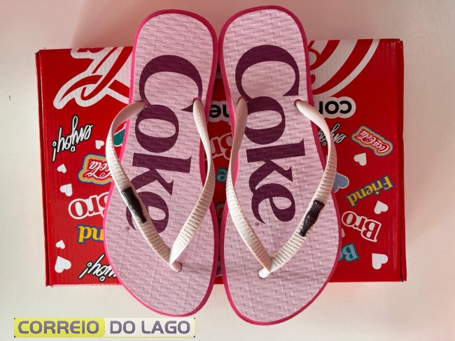 Chinelos Coca-Cola masculino e feminino entram em oferta especial de Natal na Arte&Cia de Santa Helena por R$ 69,90; confira de perto