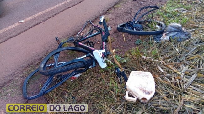 Um ciclista foi atropelado por um veículo nas proximidades da ponte sobre o Rio São Francisco, nas imediações da entrada da Linha Tapuí, em Toledo.