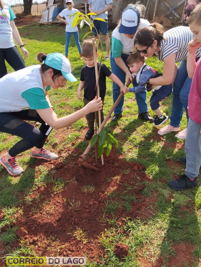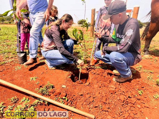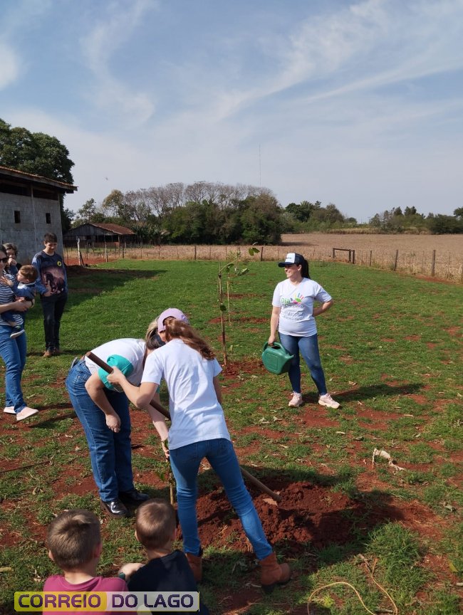 Foram plantadas mudas de espécies frutíferas, silvestres e de sombra, com o objetivo de conscientizar sobre a importância de preservar e conservar a natureza.