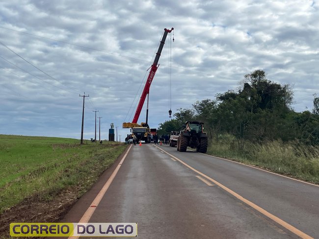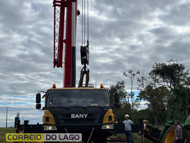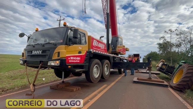 A operação de remoção envolveu a utilização de um guindaste, tratores e o esforço conjunto de produtores rurais da região, que atuaram de forma coordenada para garantir a retirada segura da colheitadeira. O trabalho foi concluído com êxito, sem danos significativos ao equipamento, que foi removido em condições de rodar até o barracão do proprietário.