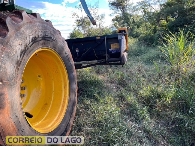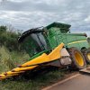 Colheitadeira é flagrada às margens de estrada rural no interior de Santa Helena