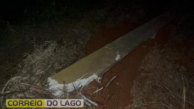 Com a força da colisão, dois postes foram completamente destruídos, evidenciando a gravidade do acidente.