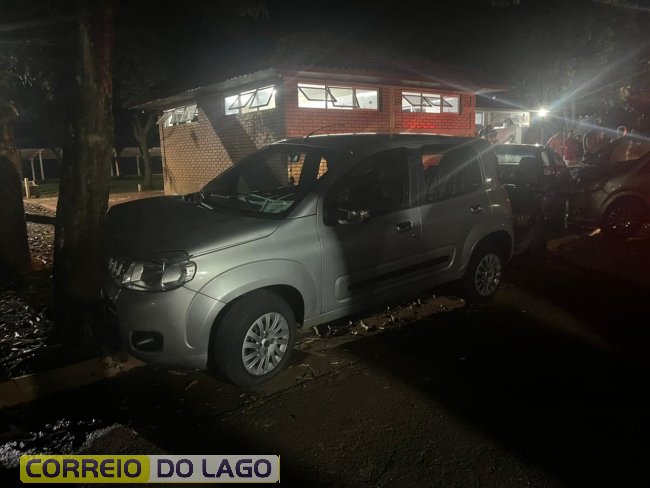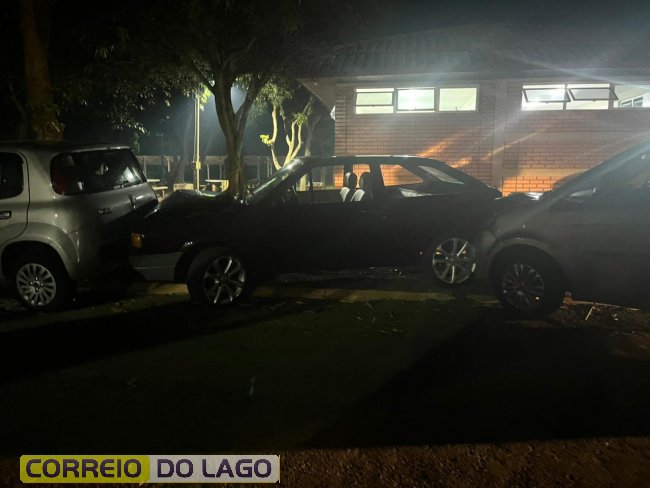 Na sequência, o Fiat Uno foi lançado contra uma árvore, que acabou servindo como anteparo e impediu que os veículos seguissem em movimento. Apesar dos danos materiais, felizmente ninguém ficou ferido.