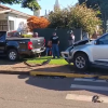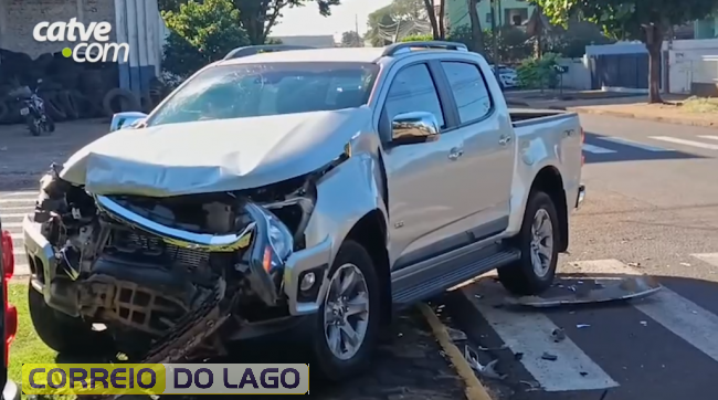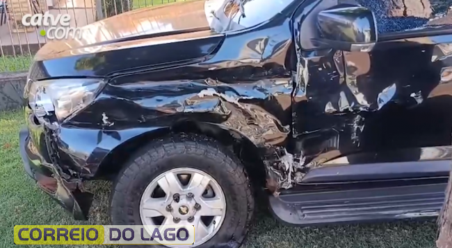 No cruzamento das vias ocorreu a batida. Com o impacto, os dois veículos saíram da pista. A caminhonete conduzida pela mulher avançou sobre a calçada, parando entre uma árvore e a cerca de uma residência.