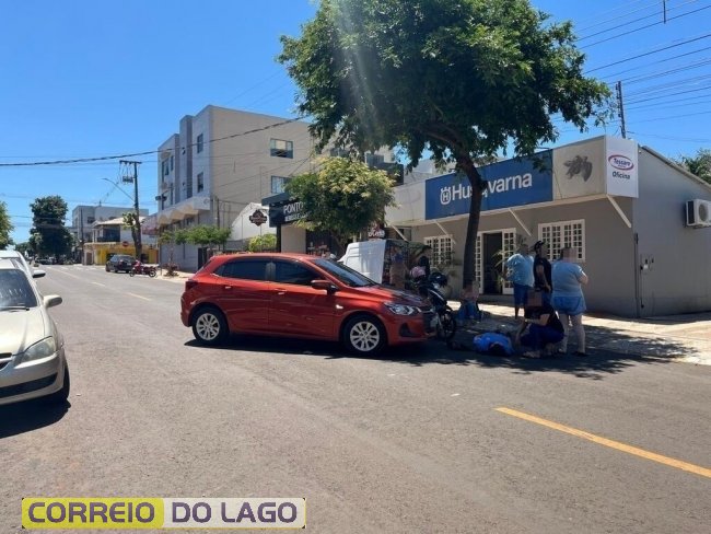 Colisão entre moto e carro deixa mulher ferida no centro de Santa Helena