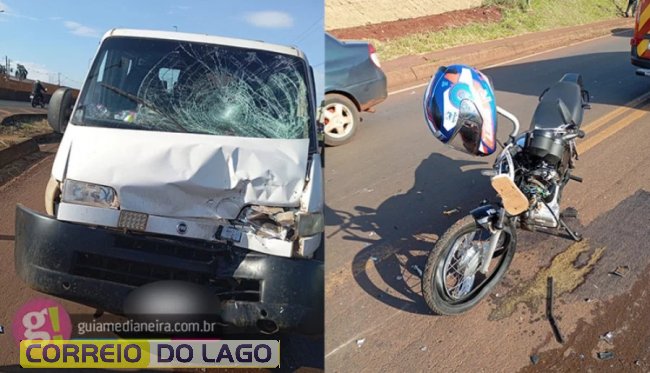 A colisão ocorreu na alça de acesso à rodovia BR-277, envolvendo uma van Fiat Ducato e uma motocicleta Honda CG 125 Fan.
