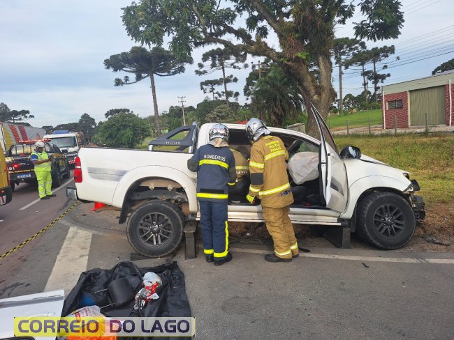 Um casal de aproximadamente 40 anos morreu e um bebê, foi socorrido em estado grave após uma colisão frontal entre um caminhão e uma caminhonete Hilux, na tarde deste sábado (25), no km 162 da Rodovia do Xisto (BR-476), em Araucária, na Região Metropolitana de Curitiba (RMC).
