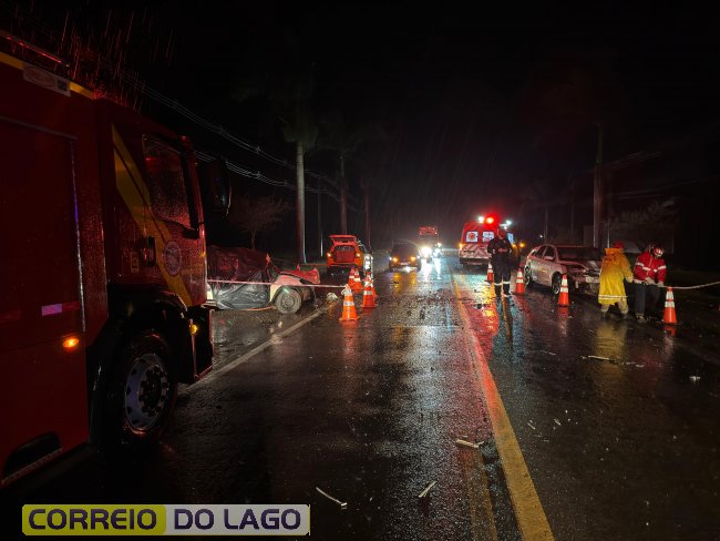 A ocorrência mobilizou equipes do Corpo de Bombeiros, Defesa Civil, Polícia Rodoviária Estadual (PRE) e profissionais da saúde do município. Com o impacto, os dois veículos tiveram a parte dianteira destruída.