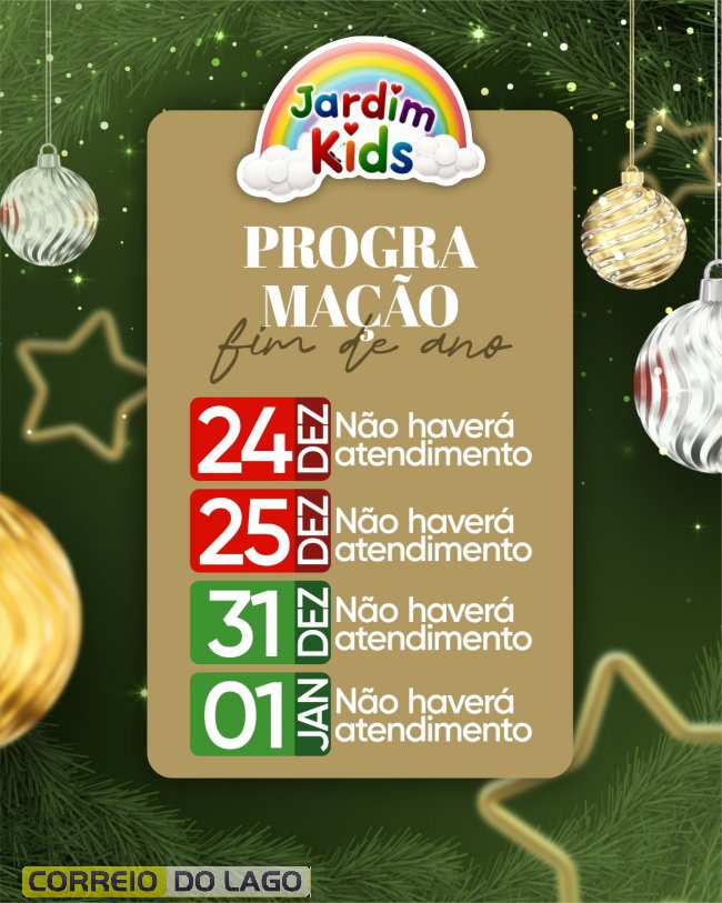 Se você deseja que seu filho aproveite as férias de maneira divertida, segura e educativa, esta é a oportunidade perfeita. Garanta a vaga da sua criança e confira também a programação de fim de ano com os dias em que não haverá atendimento no Jardim Kids.