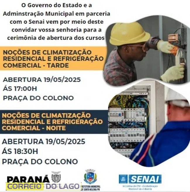 Apesar das aulas já iniciarem nesta quinta-feira (15) às 13h30 e 18h30, respectivamente, a abertura oficial dos dois cursos oferecidos pelo Governo do Estado, Município e Senai será na segunda-feira dia 18 na Praça do Colono, onde a Carreta do Conhecimento já se encontra estacionada.
